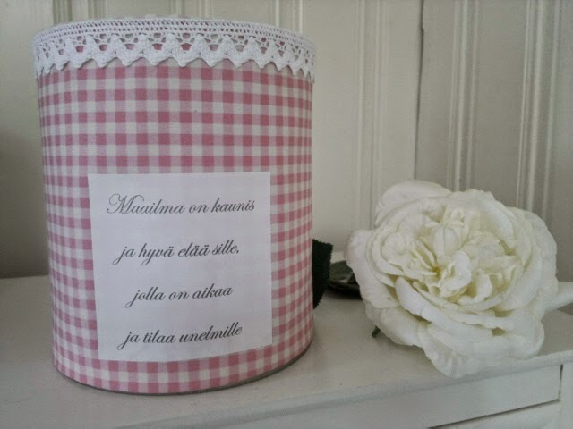 Ylioppilaille ja ammattiin valmistuville lahjaksi "Maailma on kaunis ja hyvä elää sille, jolla on aikaa ja tilaa unelmille" -purkki. Sisälle voi sujauttaa vaikka rahakuoren :) Kiva lahjaidea myös kesän hääpareille. Purkki Aitta avoinna myös helluntaina (sunnuntaina 24.5.) klo 12-16